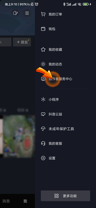 3、之后点击弹出窗口中的“创作者服务中心”选项。