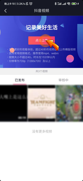 5、最后点击“点击上传”选项即可上传视频。
