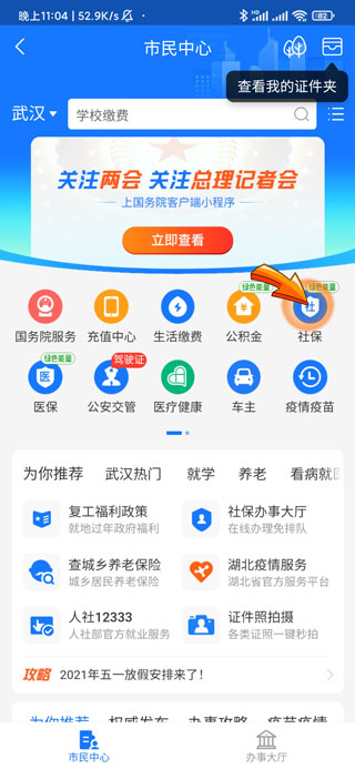 1、支付宝社保缴费首先需要打开支付宝APP,点击页面上方的“市民中心”图标。