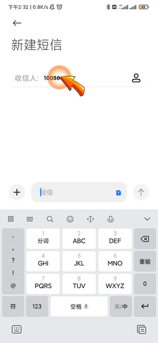 移动可以通过编发短信查询剩余流量,首先打开短信页面,点击右下角的“加号”图标,然后在收件人中输入“10086”,然后点击下方的“输入栏”,输入“cxll”后点击右侧的“发送”箭头图标即可。