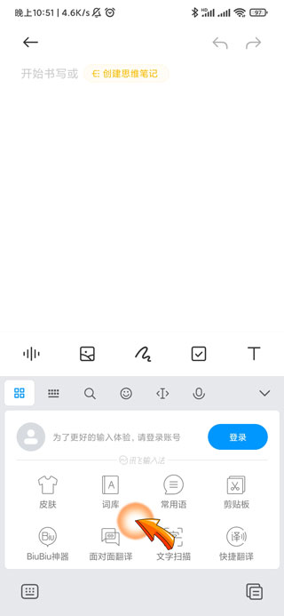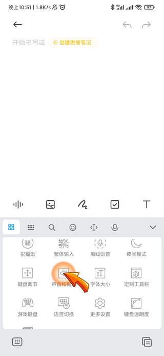 1、手机关闭按键震动首先需要打开输入法界面,点击输入法页面左上角的“四口”图标。
