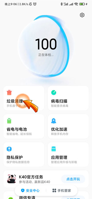 3、手机检查出垃圾后,点击页面底部的“清理选中垃圾”选项即可。