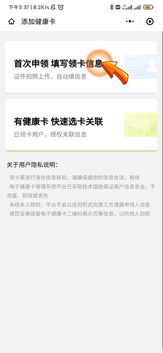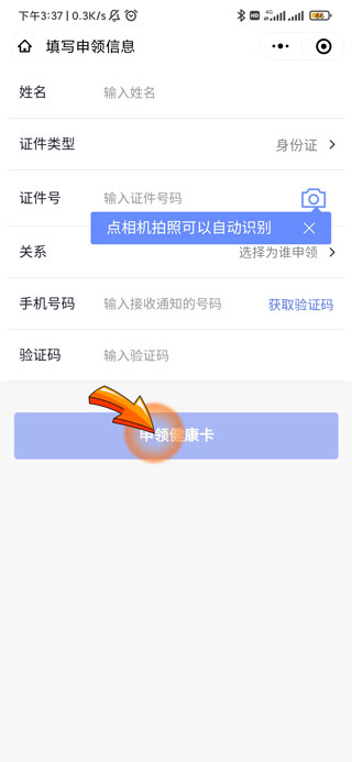 6、最后填写完申领信息后点击底部的“申领健康卡”选项即可。