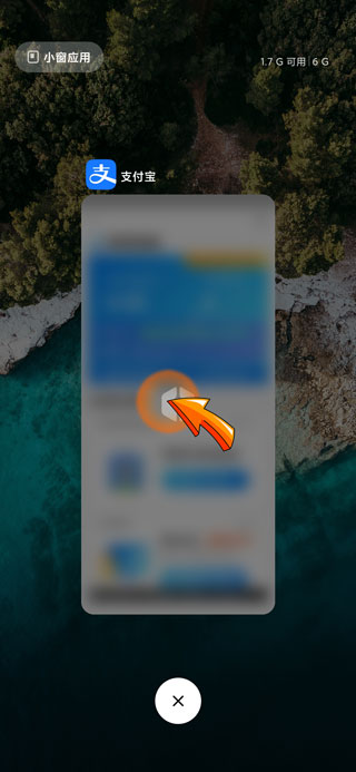手机任务管理界面需要上滑桌面上的空白区域,即可进入手机的任务管理界面,同时可以长按后台“应用”图标,图标左侧即可弹出四个小窗口,例如点击第一个“锁”图标,即可将该应用在后台一直运行。