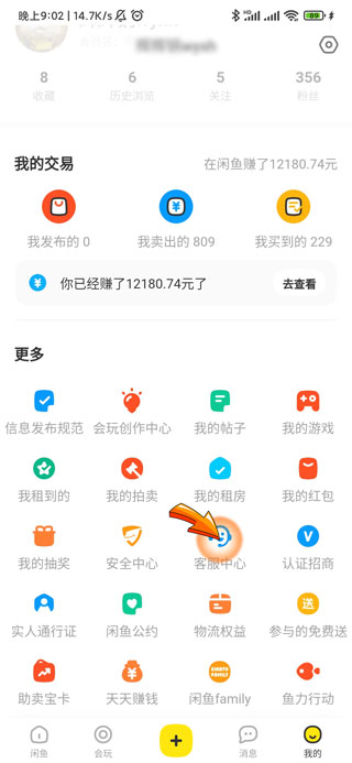 2、然后点击我的页面中的“客服中心”图标。