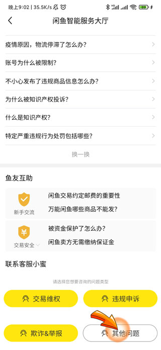 3、进入页面后,点击底部的“其他问题”选项。