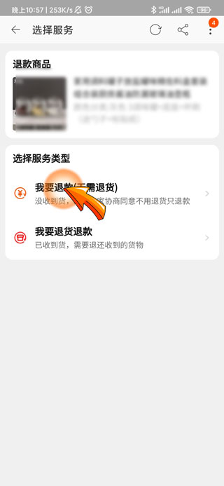 5、最后点击选择服务类型下方的“我要退款”选项。