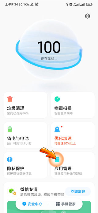 1、微信开启运动权首先需要点击打开“手机管家”图标。