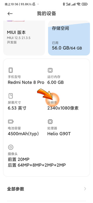3、进入设置页面后,分辨率图标下方即为手机的分辨率。