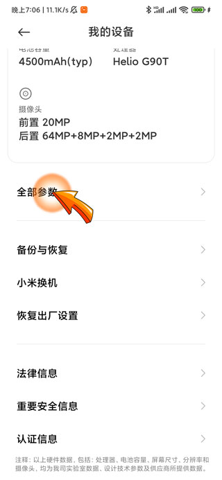 红米打开otG模式需要进入开发者模式,首先点击桌面上的“设置”图标,然后点击设置页面中的“我的设备”选项,之后下滑页面点击“全部参数”选项,最后连续点击“MIUI版本”选项即可打开。