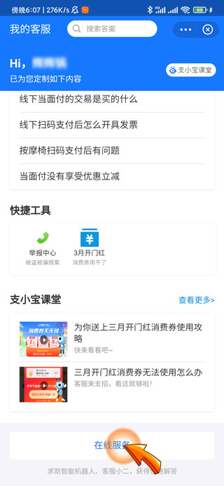 5、最后点击页面底部的“在线服务”选项即可联系客服进行处理。
