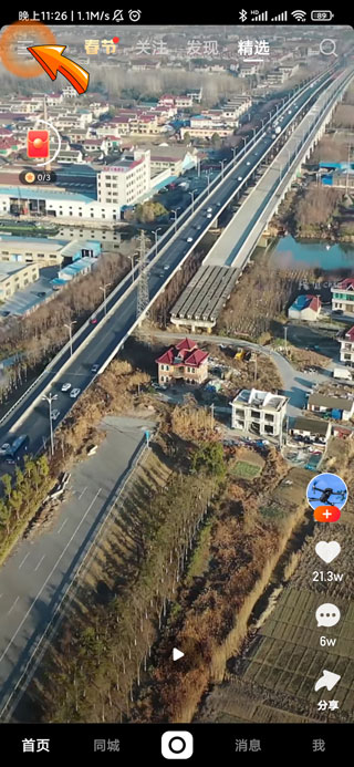 1、快手提现首先需要打开快手APP,点击页面左上角的“三横”符号。