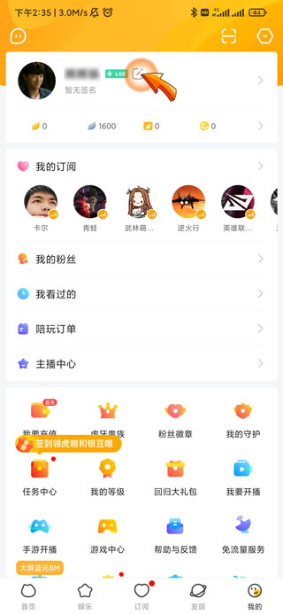 1、虎牙更换头像首先需要打开虎牙APP,点击页面右下角的“我的”图标。