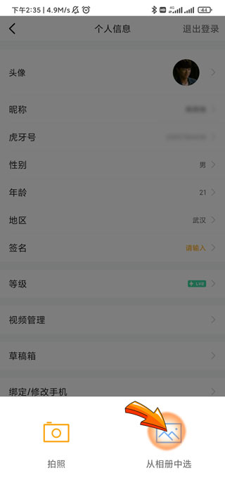 4、最后点击页面右下角的“从相册中选”图标进行修改头像。
