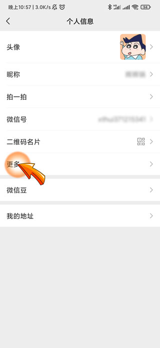 3、进入个人信息页面后,点击“更多”选项。