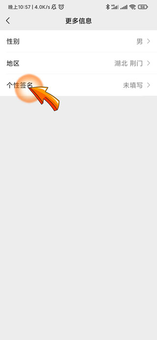 4、之后在更多信息页面中点击“个性签名”选项。