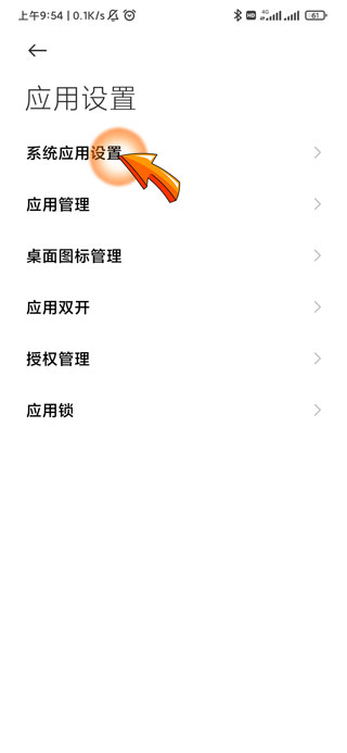 3、进入应用设置页面后,点击顶部的“系统应用设置”选项。