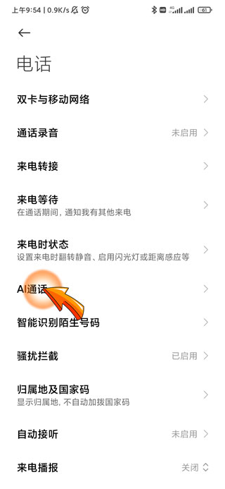 5、最后点击“AI通话”选项即可打开AI通话功能。