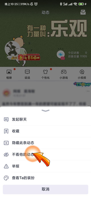qq空间屏蔽对方动态的步骤