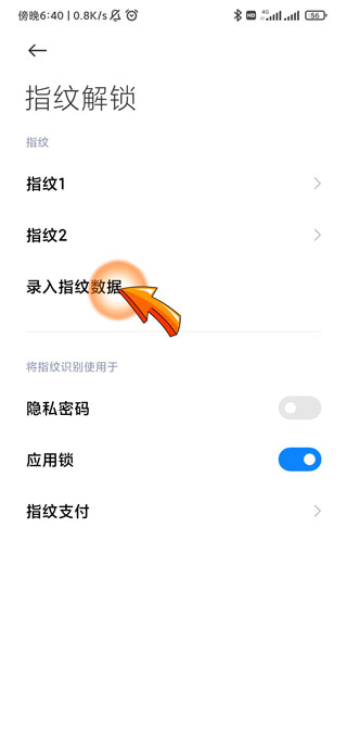 4、最后点击“录入指纹数据”选项即可重新设置指纹。