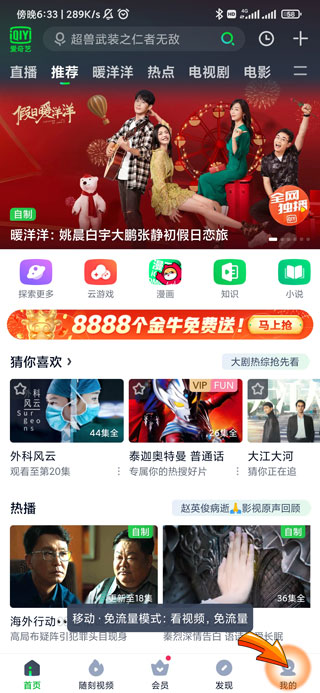 1、爱奇艺查看缓存首先需要打开爱奇艺APP,点击页面右下角的“我的”图标。