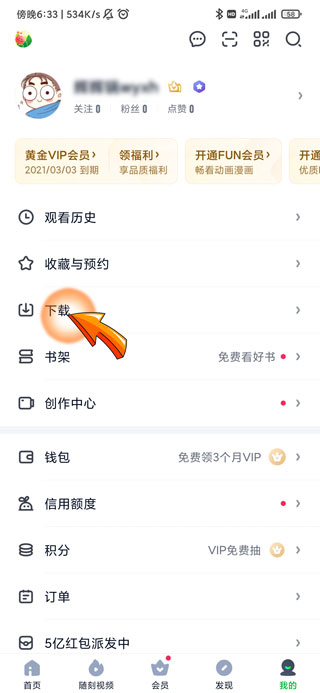 2、然后点击我的页面中的“下载”选项。
