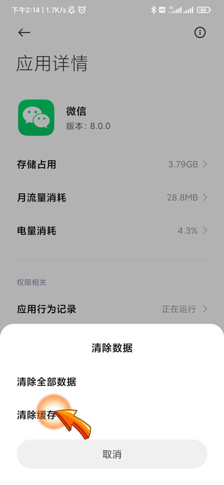 清理微信缓存聊天记录图片将会被删除,微信清理缓存需要点击打开“手机管家”图标,然后点击“应用管理”选项,找到并点击“微信”选项,再点击页面右下角的“清除数据”选项,最后点击“清除缓存”选项即可。