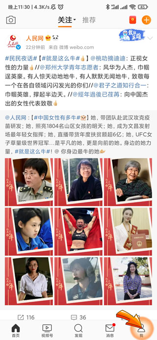 1、微博修改名称首先需要打开微博APP,点击首页右下角“我”的图标。