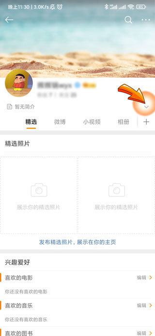 3、进入我的主页后,点击暂无简介右侧的“箭头”图标。