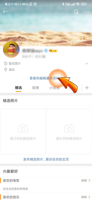 4、之后点击箭头下方弹出窗口中的“查看和编辑基本资料”选项。
