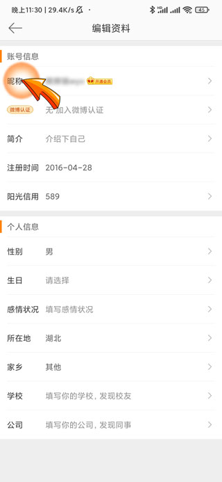 微博不能查上一次改名时间,微博修改名称需要打开微博APP,点击右下角“我”的图标,然后点击我的头像,之后点击暂无简介右侧的“箭头”,点击“查看和编辑基本资料”选项,再点击“昵称”选项,修改后点击“确定”选项即可。