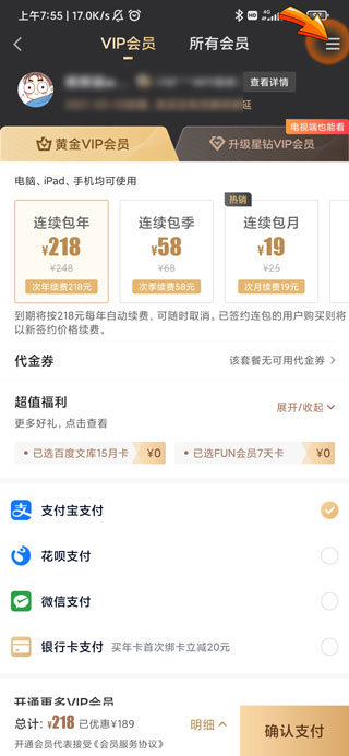 2、然后点击头像下方的“黄金VIP会员”选项。