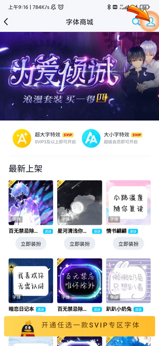 5、最后点击我的字体页面右上角的“恢复默认”选项即可。