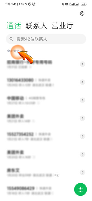 2、进入带通话页面后,点击右上方的“全部通话”选项。