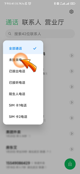 3、最后选择需要查看的类型,例如点击“未接电话”选项。