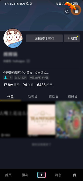 2、然后点击我的页面右上角的“三横”符号。