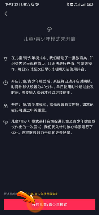 抖音青少年模式开启的步骤