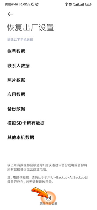 4、最后点击页面底部的“清除所有数据”选项即可。