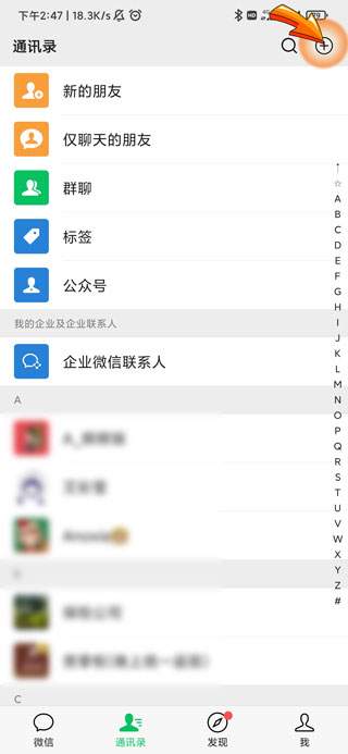 1、微信创建群聊需要打开微信APP,点击页面右上角的“加号”图标。