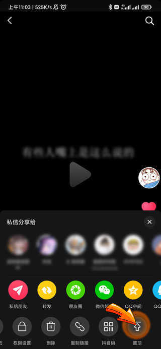 4、最后点击页面底部的“置顶”图标,即可将该视频放置在主页最上方。