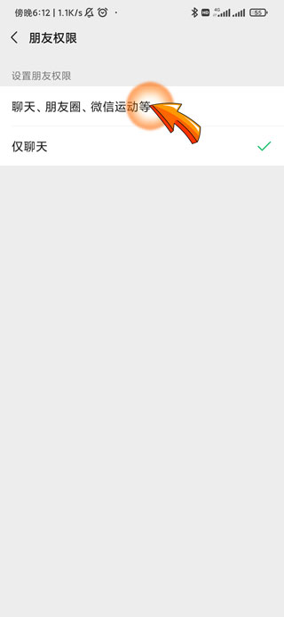 3、然后点击朋友权限页面中的“聊天、朋友圈、微信运动等”选项。