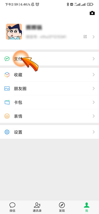 2、然后点击我的页面中的“支付”选项。