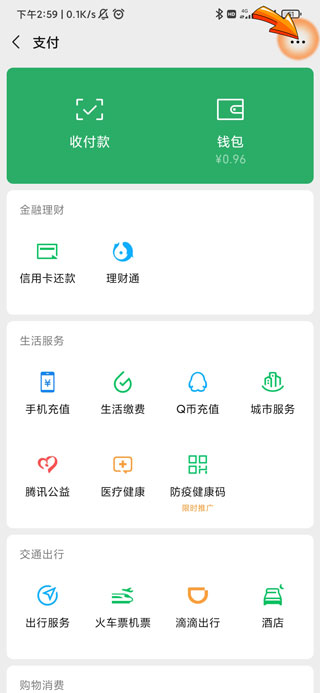 3、再点击支付页面右上角的“三点”符号。