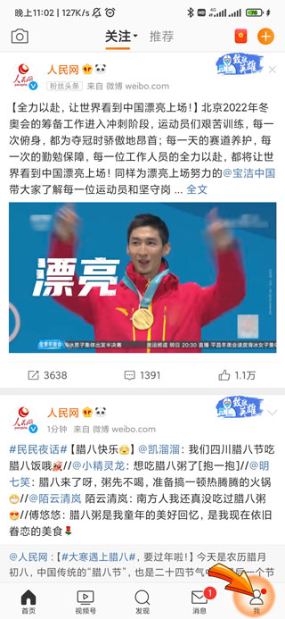 1、微博取消关注首先需要打开微博APP,点击页面右下角的“我”的图标。