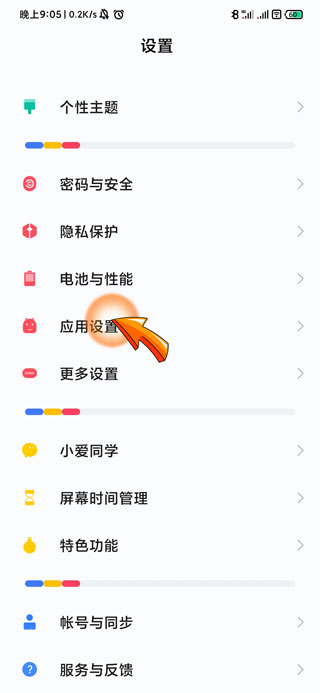 小米手机加密相册需要打开桌面上的“设置”图标,然后点击设置页面中的“应用设置”选项,之后点击“应用锁”选项,找到相册图标,点击打开右侧的“开关”按钮即可加密相册。