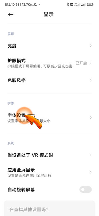调整字体大小需要点击桌面上的“设置”图标,进入设置页面后,点击“显示”选项,然后点击显示页面中的“字体设置”选项,最后点击页面底部的“大小条”即可设置字体大小。