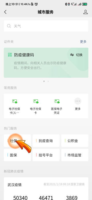 5、再点击社保页面中的“电子社保卡(人社部)”选项。