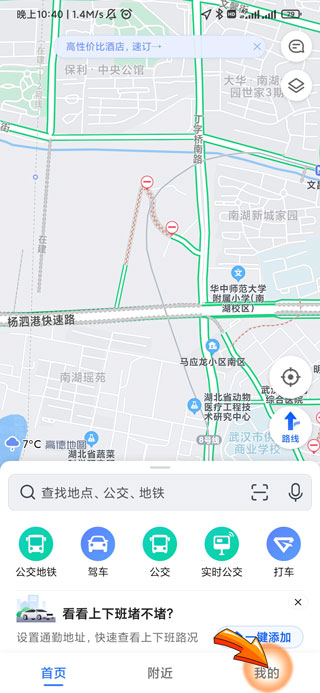 1、德地图设置语音包需要打开高德地图,进入首页后,点击右下角“我的”选项。