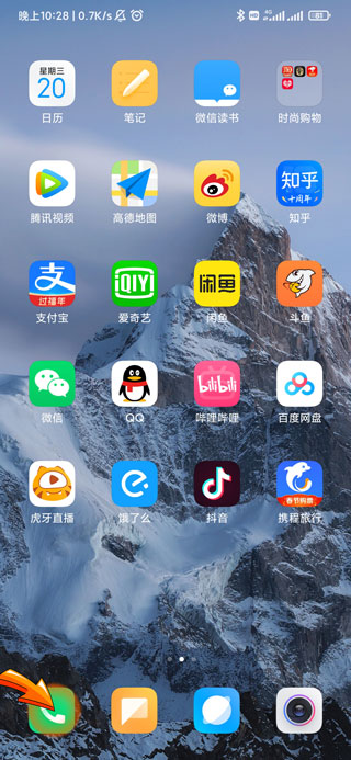 1、手机电话拦截设置首先需要点击桌面上的“电话”图标。
