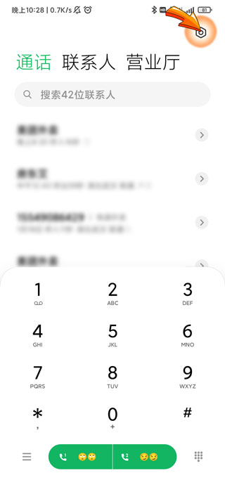 2、进入电话页面后,点击右上角的齿轮“设置”图标。